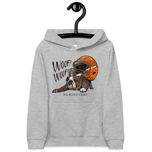 Young or old, this Cleveland pound puppy football hoodie is one of those timeless pieces that fit seamlessly into everyone’s wardrobe. The kids fleece hoodie will easily become a trusted companion for all your kiddo’s adventures thanks to its soft and cozy feel. The hoodie is made from durable material and has elastic cuffs and a waistband that will ensure long-lasting performance.